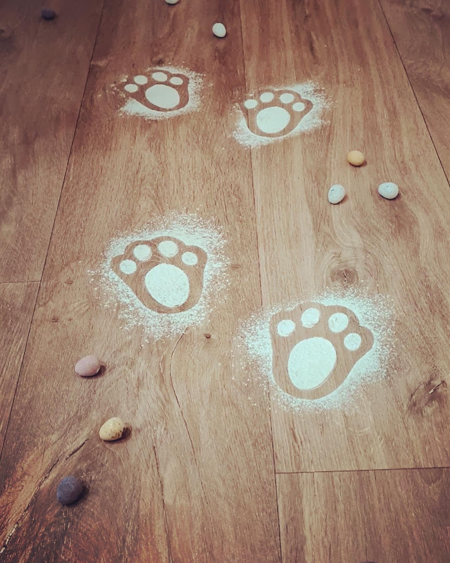 Surprise the kids on Easter morning with a visit from the Bunny himself! Simply place footprints, sprinkle some flour or powder and watch the kids delight in the mess he has made!