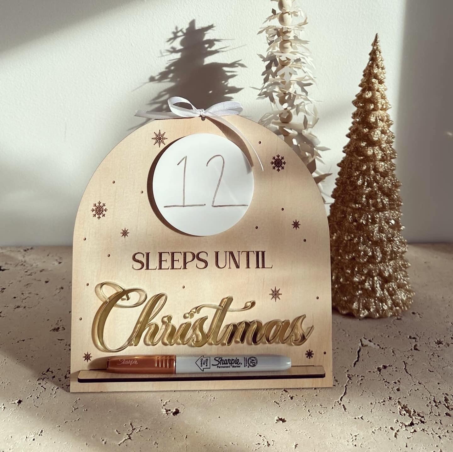 Count down the days to Christmas with our engraved wooden stand. Topped with golden mirror lettering and glossy white acrylic which perfect for writing moth marker or liquid chalk. SELECT COLOR FOR "CHRISTMAS" LETTERING.