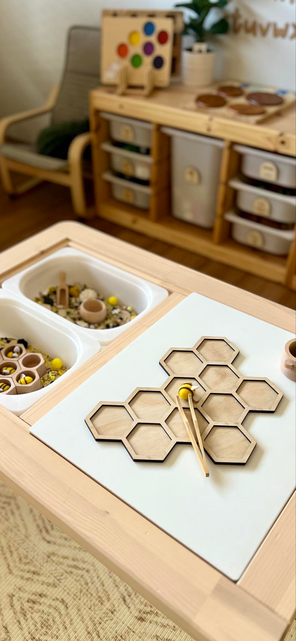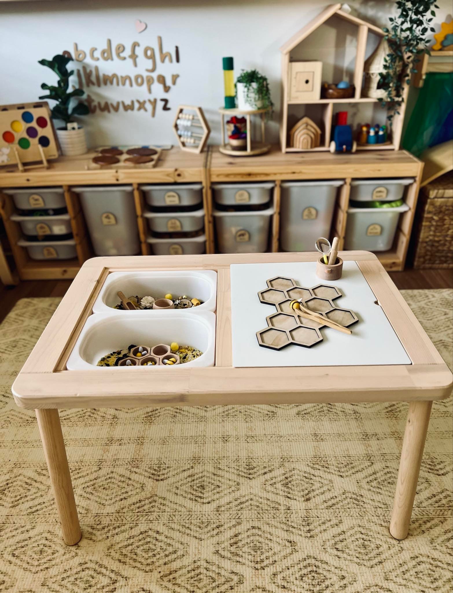 Build your child’s fine motor skills, color recognition, pattern learning and imagination with our brand-new inserts suitable for the IKEA Flisat Activity table. Fits perfectly into the Trofast Large Bins