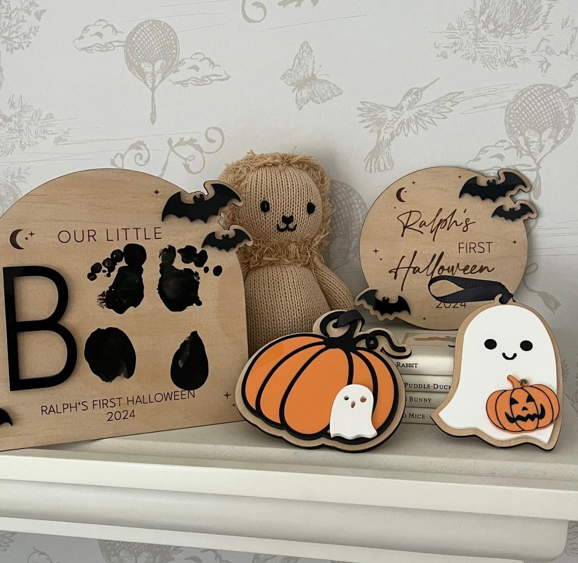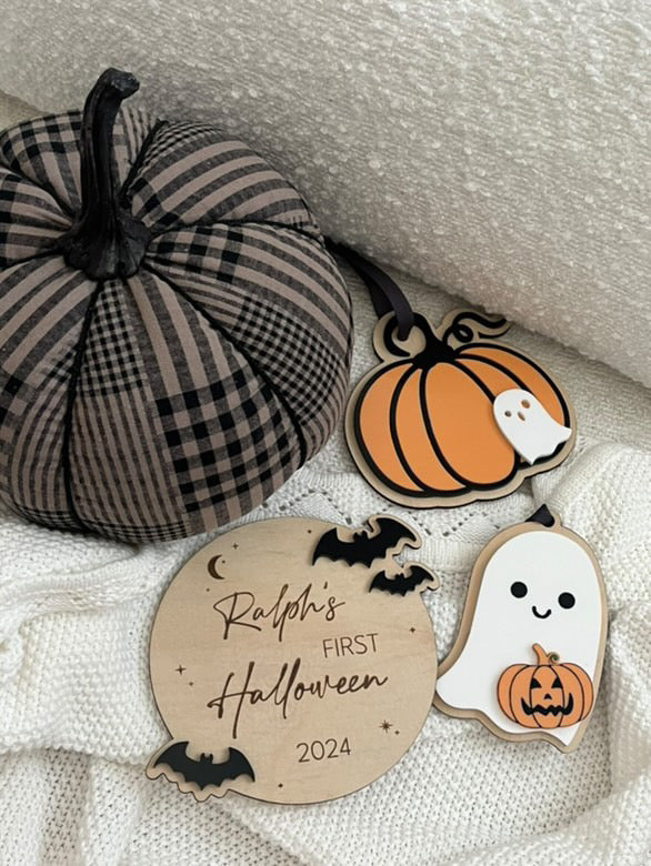 3. Double layer wood/acrylic pumpkin with baby ghost.
