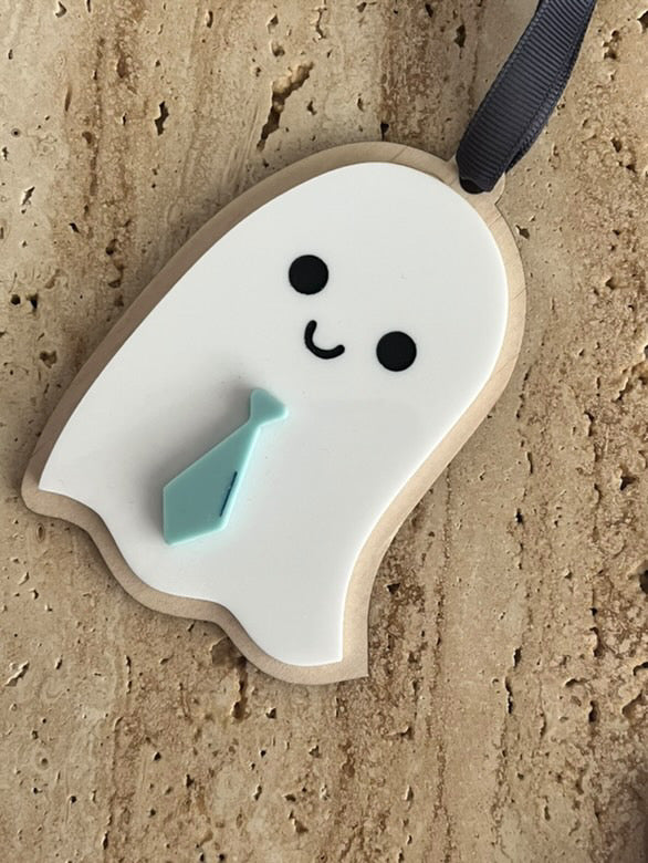 1. Double layer wood/acrylic ghost with mini tie.