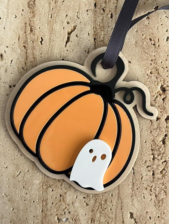 2. Double layer wood/acrylic ghost with mini pumpkin.