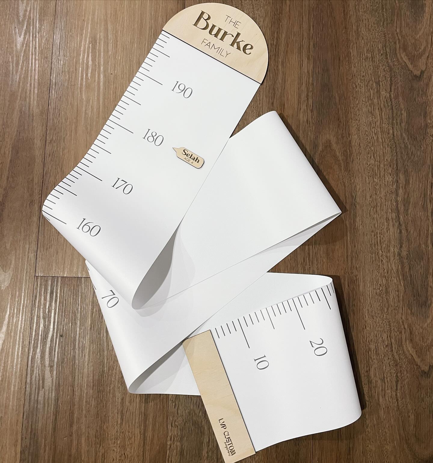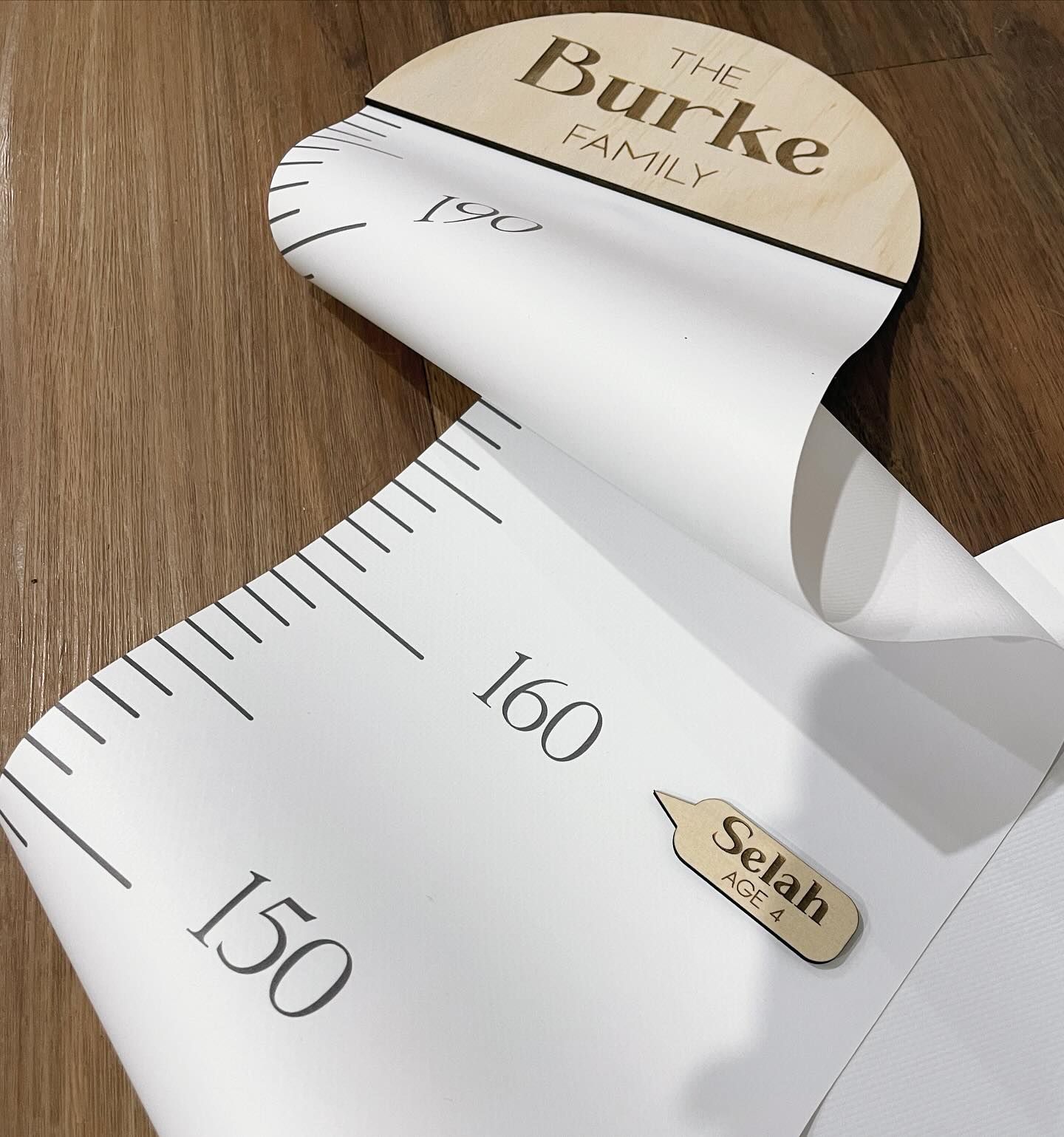 Easy to mount on the wall, and move from home to home - these personalised Height Charts are lightweight and roll down into a custom-sized box for storage and protection.