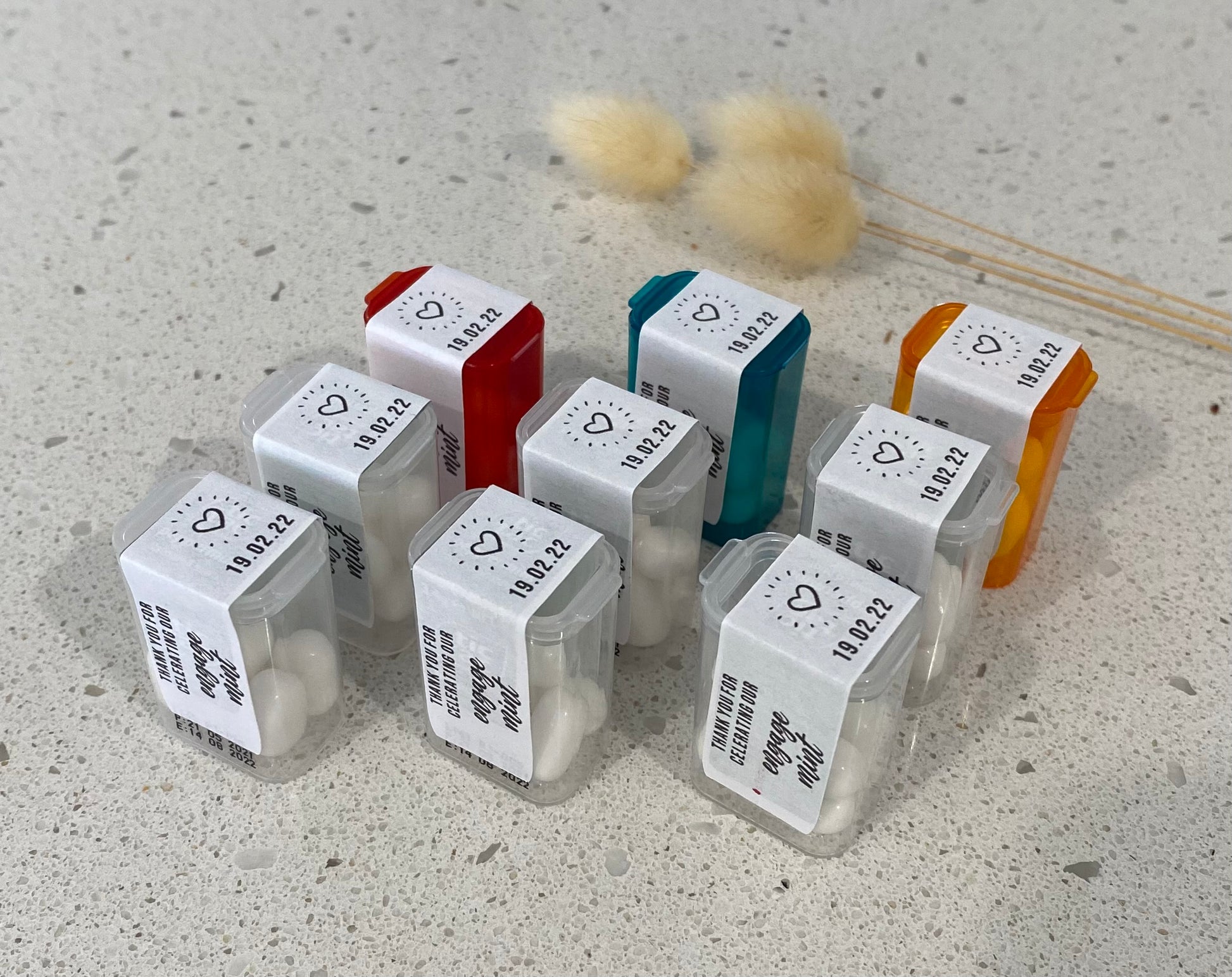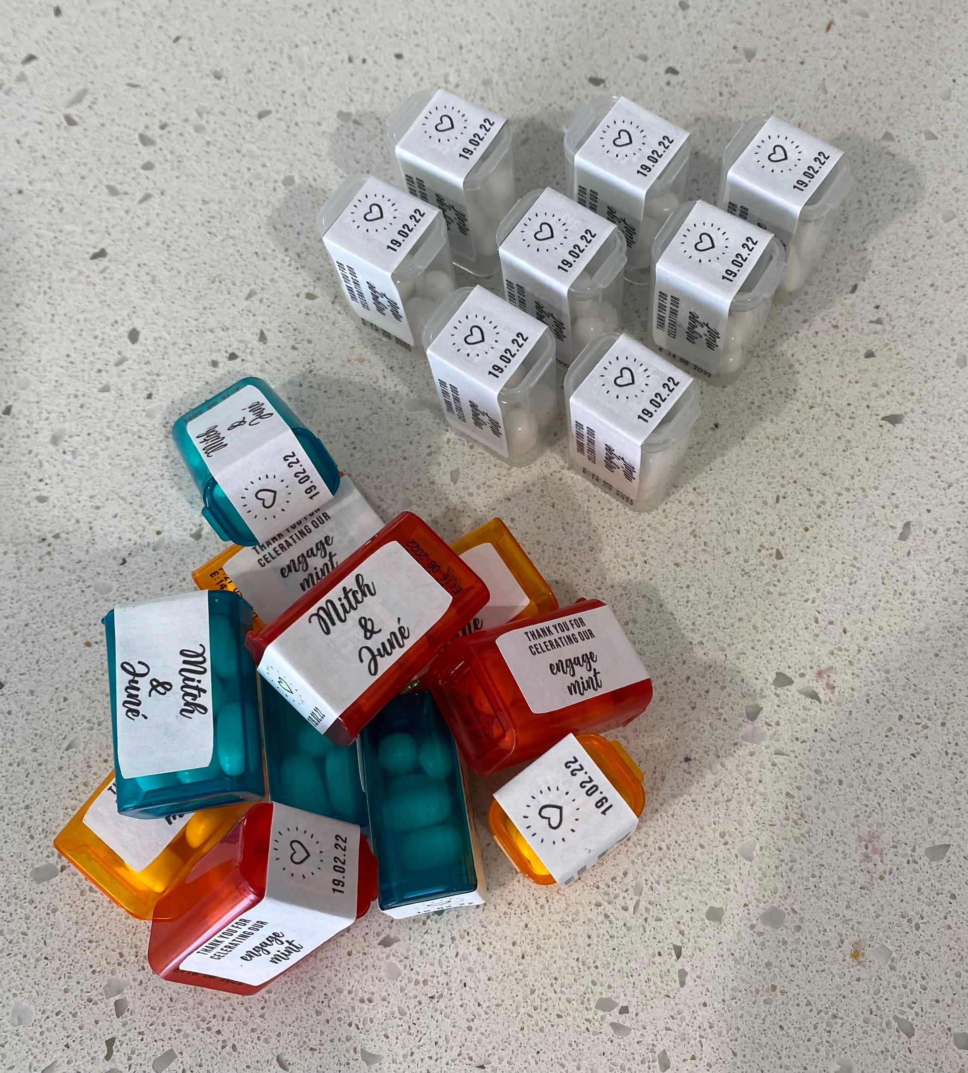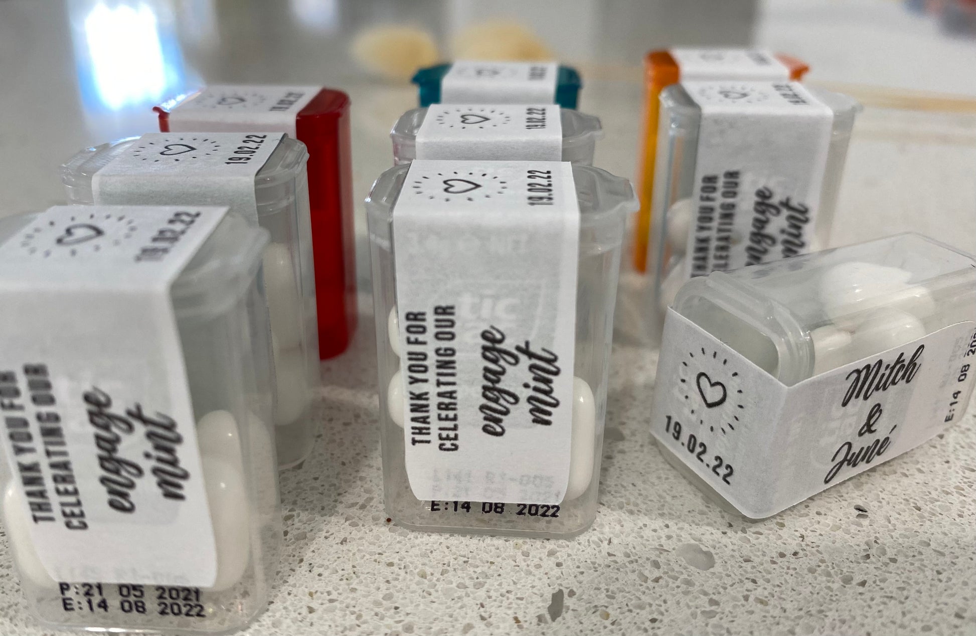 Thank your guests with these adorable Tic Tac mint favors. Personalised with couple’s names. Perfect for bridal showers, weddings, bachelorette parties, engagement parties etc.