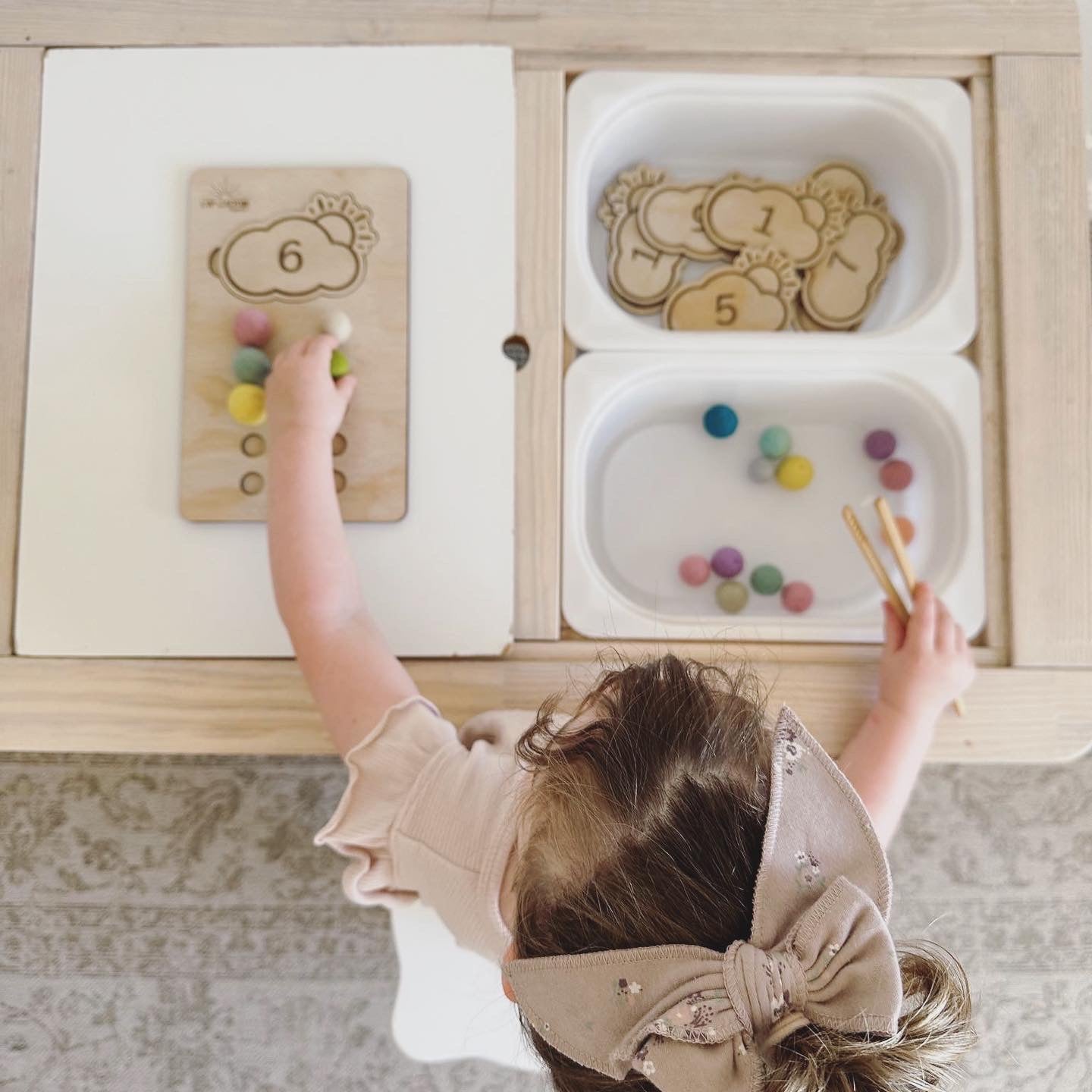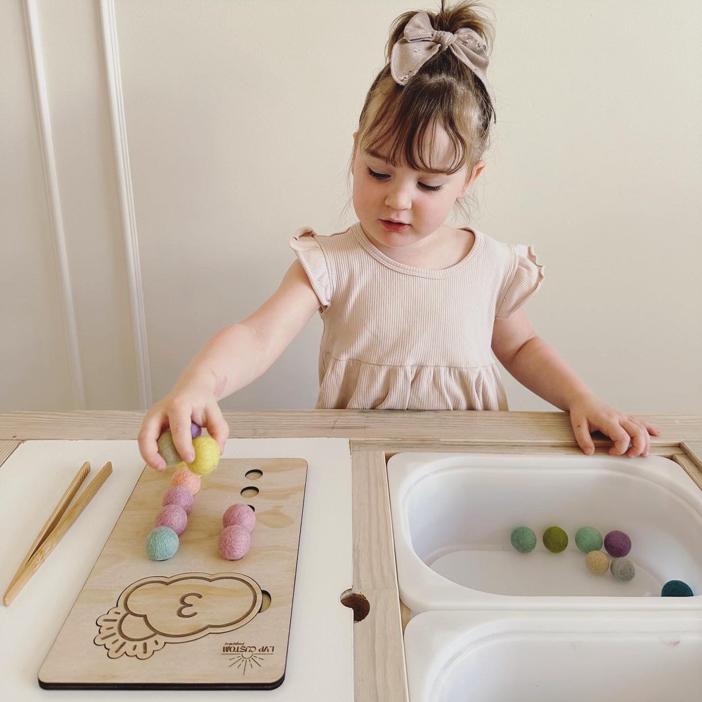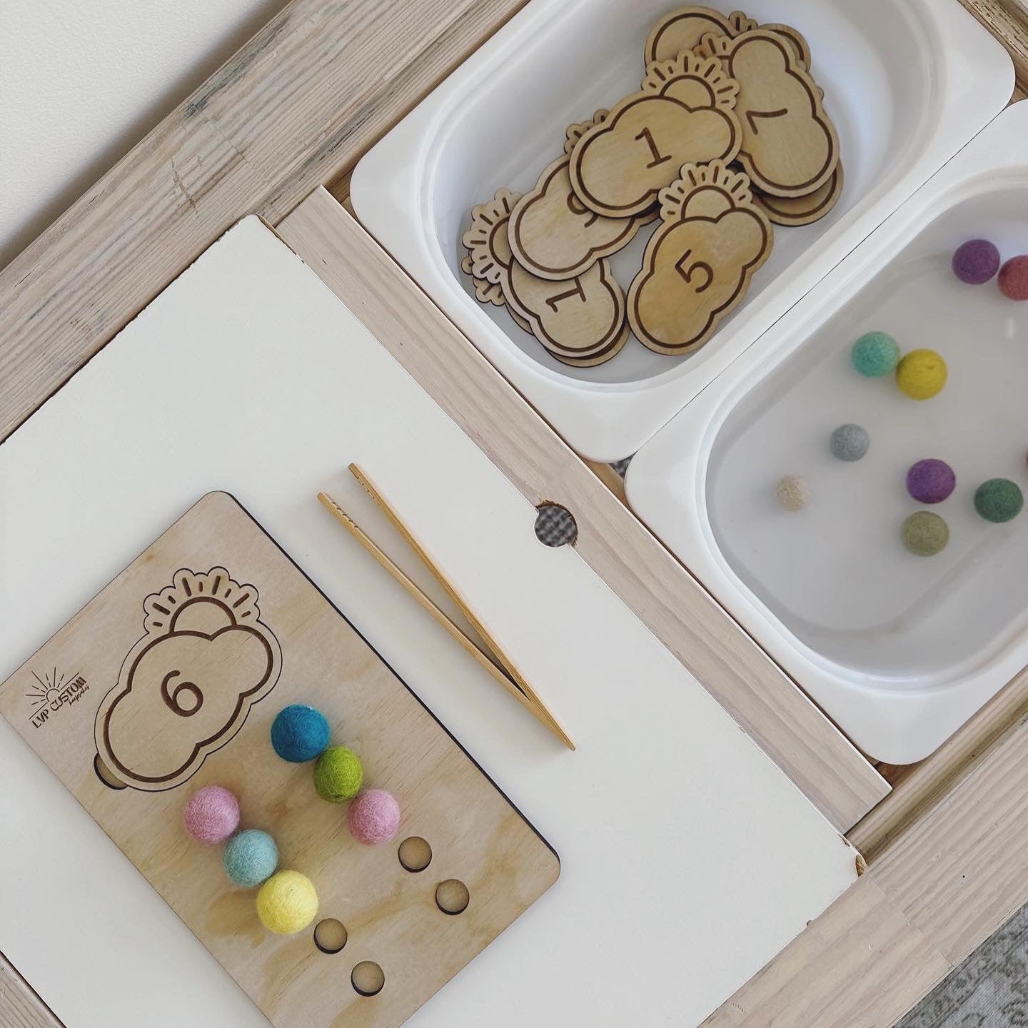 NEW NEW NEW! Montessori Wooden counting boards. These boards are great way to teach your little one to count from 1 to 10 while also stimulating sensory with colorful felt balls. Match the interchange wooden discs with the soft felt balls.