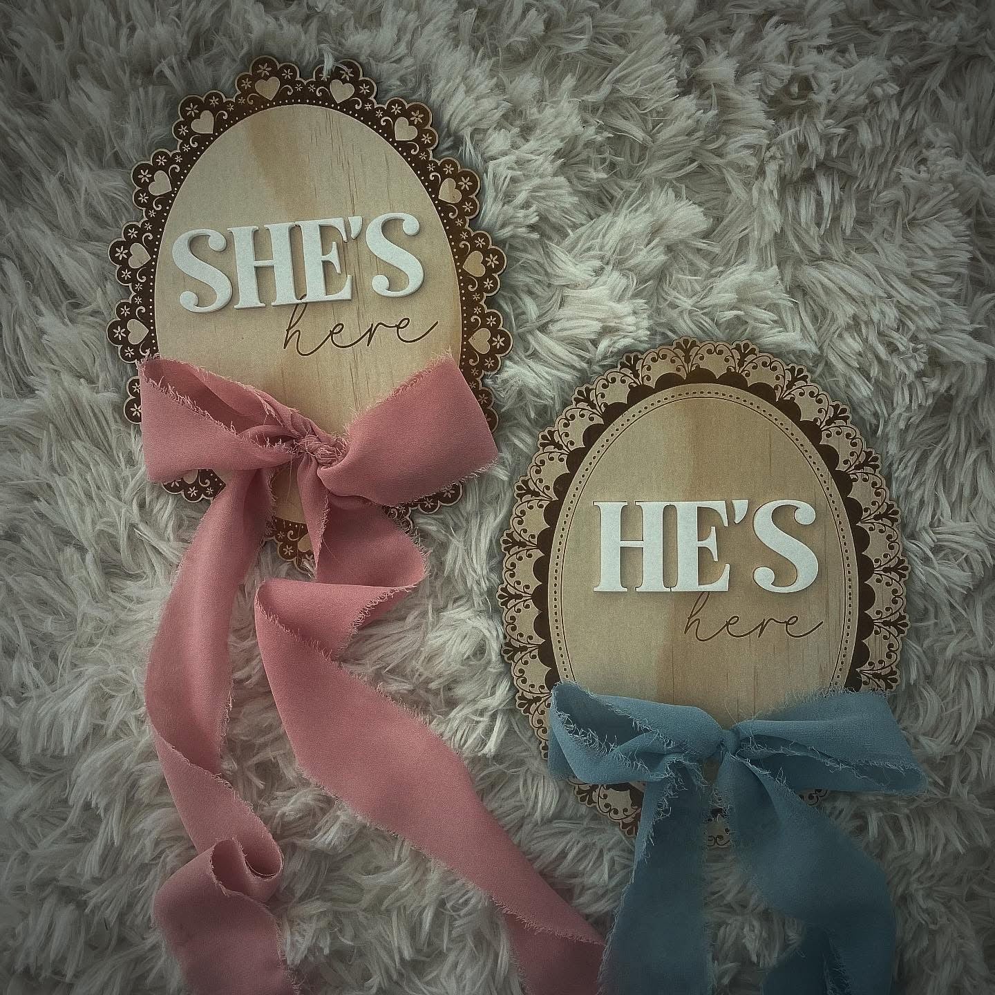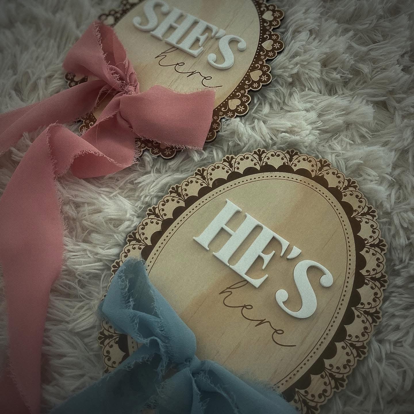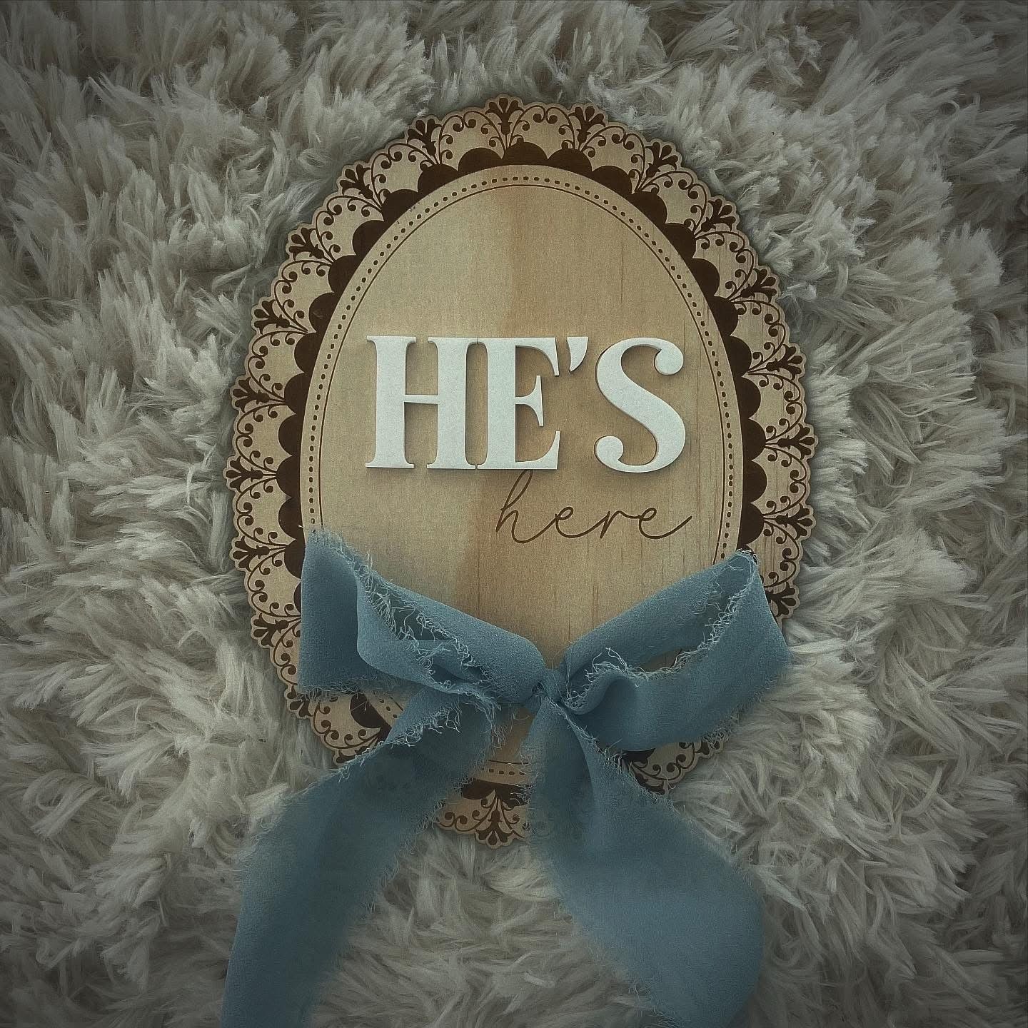 Announce the arrival of your baby with this vintage inspired/lace vibes wooden disc with glossy acrylic 3D lettering and bow to match. 20cm